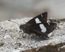 喜歡貼近地面活動,飛行緩慢,容易接近。翅片深褐色,翅底有白色圓點。 |
