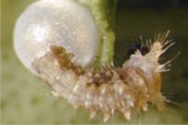 蛹:主要分為帶蛹(吐出的絲固定腹部及尾部)及垂蛹(吐出的絲只固定尾部,頭部則下垂)兩種,當幼蟲開始結蛹時,牠們便會停止進食,並找尋一個安全的地方結蛹。牠們會先吐絲把尾部繫於樹枝上,經過數天的時間,幼蟲身體的皮就會脫落,變成蛹。